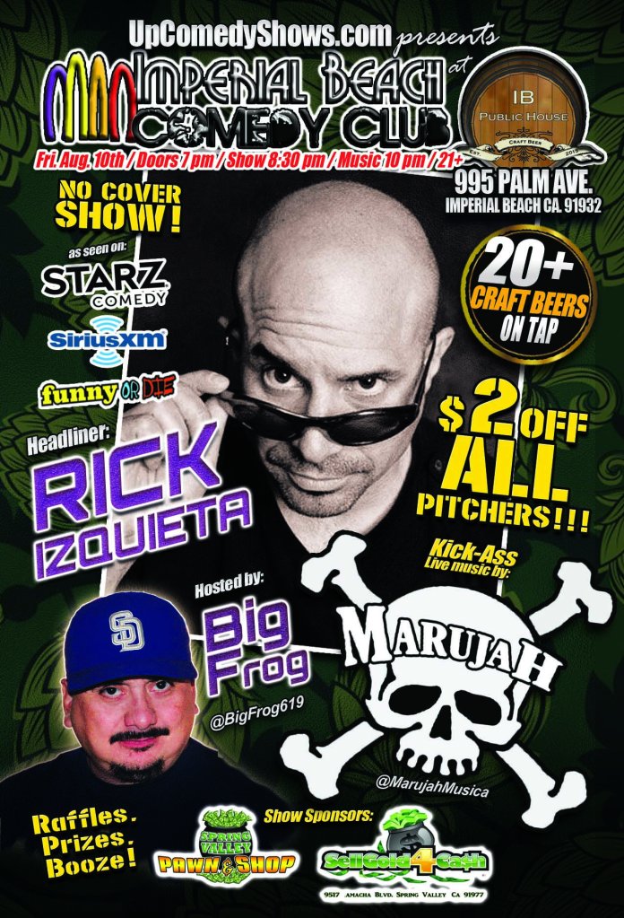 On Friday night, August 10th, the IB Comedy Club takes over The IB Public House to bring you live comedy from Rick Izquieta and kick-ass music from one of San Diego’s hottest bands Marujah!