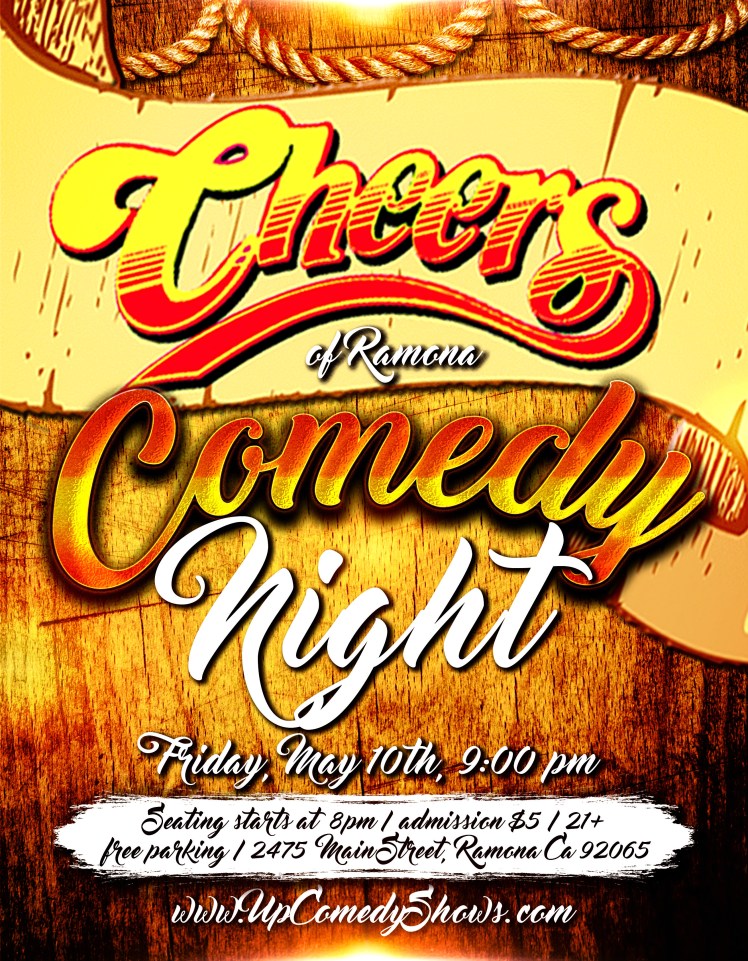 Friday, May 10th, your Cheers of Ramona and Up Comedy Shows present Comedy Night!